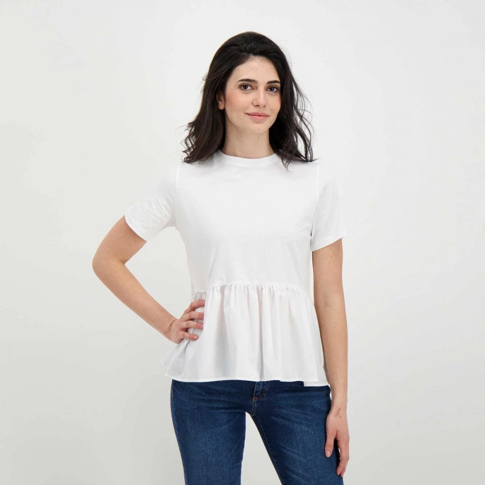 Vestibilità loose a maniche corte, è realizzata in jersey e popeline di cotone, morbida e confortevole.