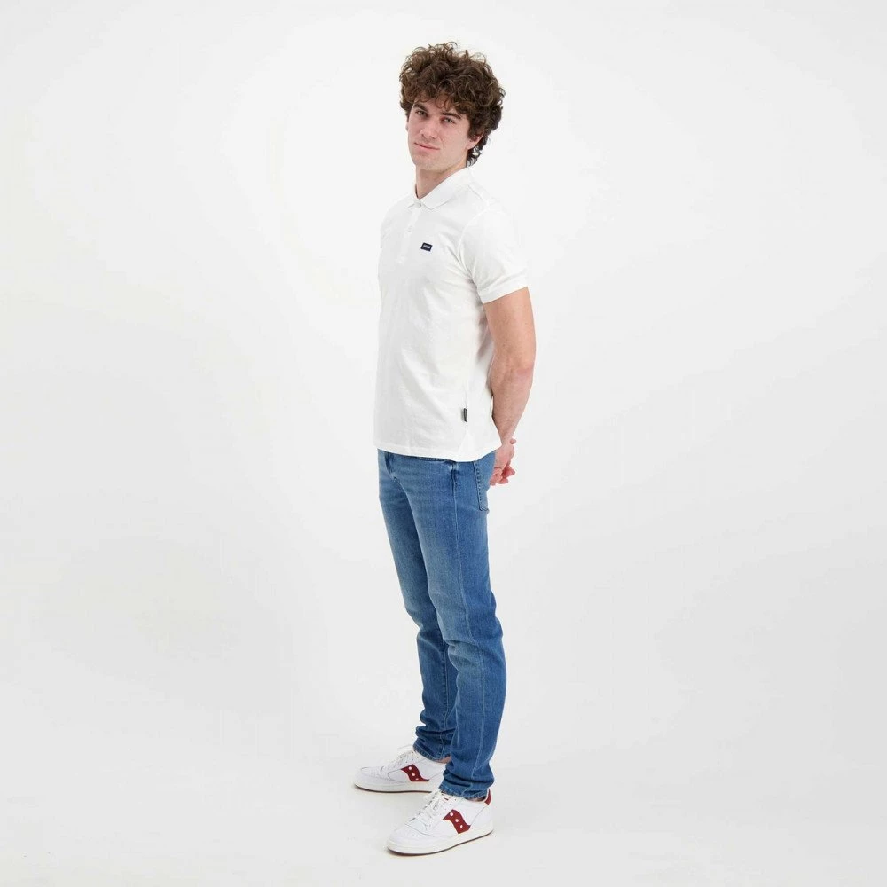 Vestibilità regular con colletto con chiusura a due bottoni, è rifinita da bordi a coste e patch logo al petto.