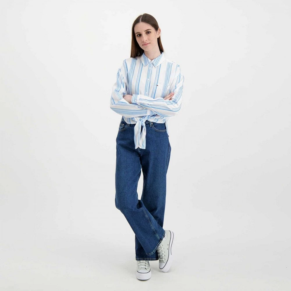 Tommy Jeans DW0DW12901 Camicia Tjw Front Tie Stripe Con Nodo Donna Moda Donna