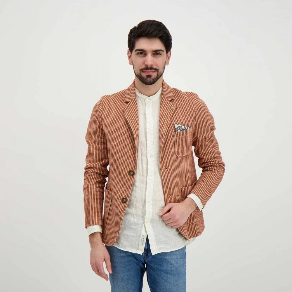 Il blazer V2 nel gessato marrone e beige, è un passe-partout ideale per completare outfit casual e formali da uomo in ogni occasione.